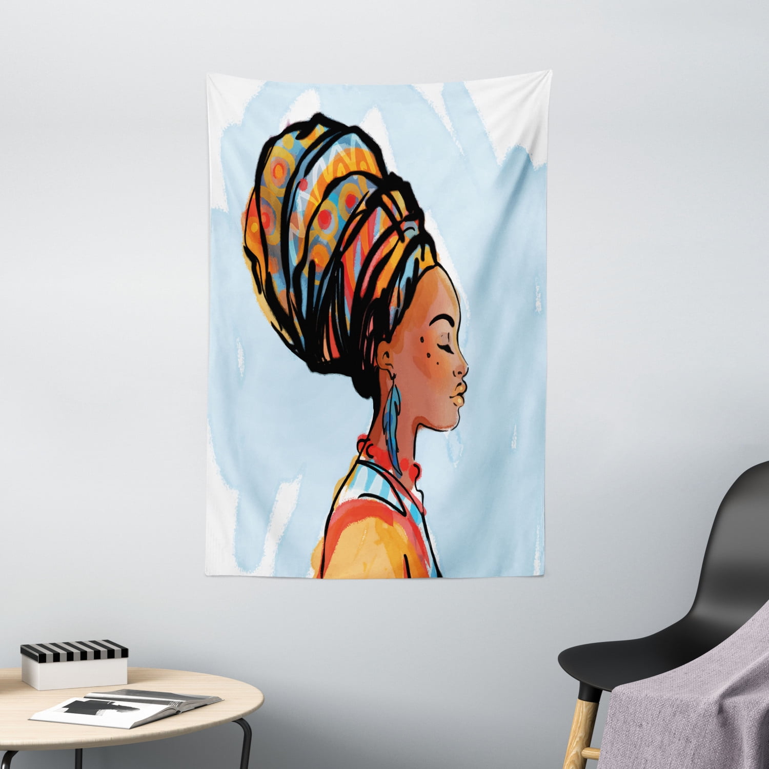 Folk Art Tapestry Side Portrait Painting Of African Woman In Traditional Clothes And Feather Earring Wall Hanging For Bedroom Living Room Dorm Decor 40w X 60l Inches Multicolor By Ambesonne Walmart Com